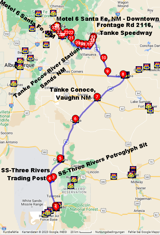 Ich erspare mir aber den Interstate von Santa Rosa/Albuquerque (WP 8 gelöscht) und fahre direkt auf die alte Route 66 via Las Vegas/NM