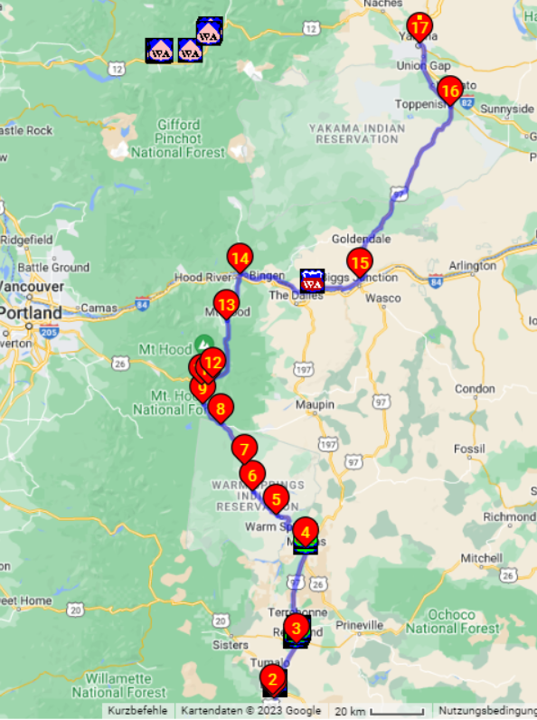 Von Bent, OR nach Yakima, WA