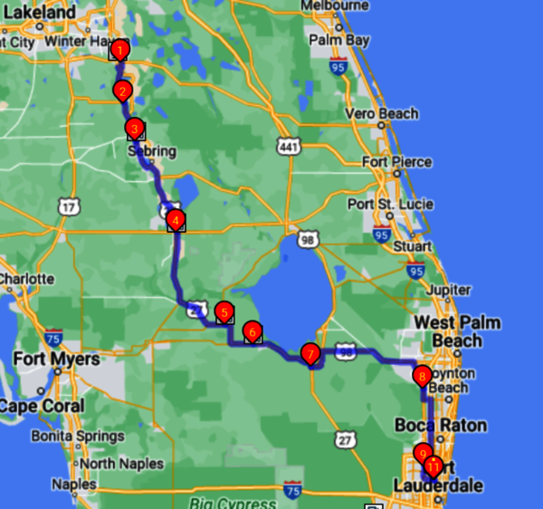 Nochmal umgeplant, ohne den Tripp auf dem US27 duch/am Rande der Eveglades lang.... mit lange Strecke nur Kokos :-)